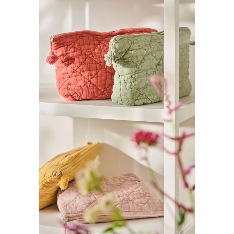 Smart og praktisk toilettaske fra Ib Laursen i en smuk, støvet grøn pistacie nuance. Tasken er quiltet for et blødt og elegant udtryk og har god plads til dine toiletartikler – perfekt til både hverdagens behov eller rejsebrug. Den fine farve og det tidløse design gør den nem at matche med resten af din accessories-samling.