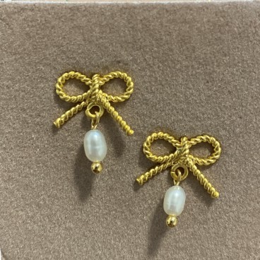 Ørestikker - Friihof + Siig guldbelagt - mat snoet sløjfe m/ perle