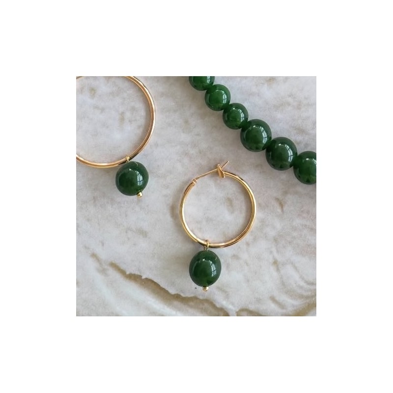 Øreringe - Friihof + Siig - guldbelagt "Malaysian green jade" m/ grøn perle - lille