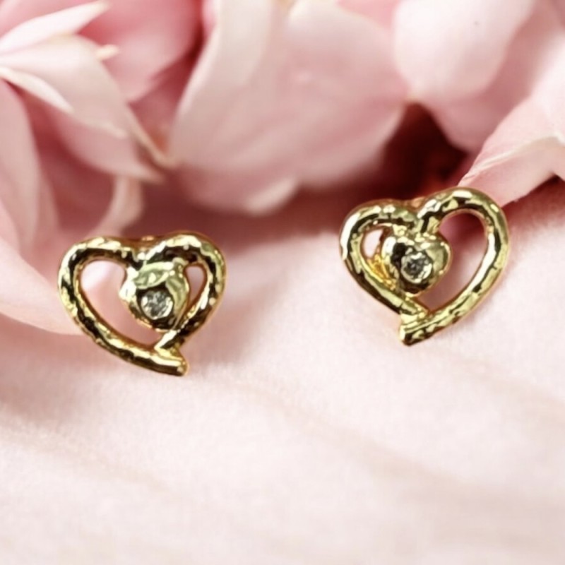 Øreringe / ørestikker - Friihof + Siig - guldbelagt hjerte m/ sten