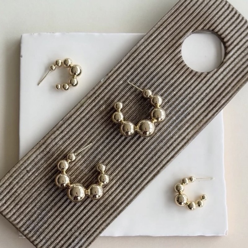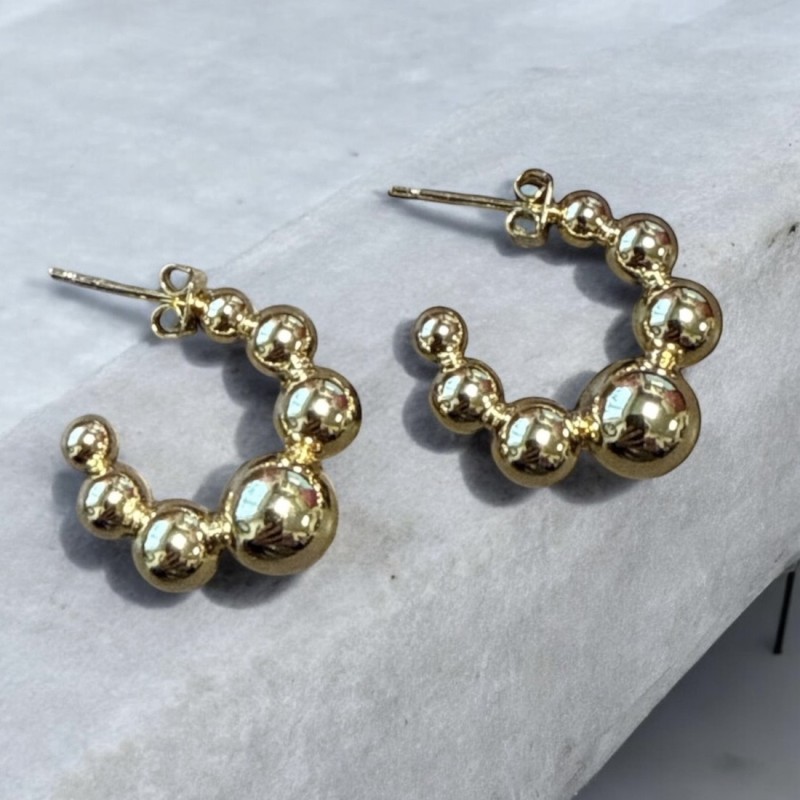 Øreringenes kerne er alle lavet af messing, som er forgyldt så det ligner guld. D.v.s. disse er forgyldt med 16 karat guld. Mix dem med andre øreringe.