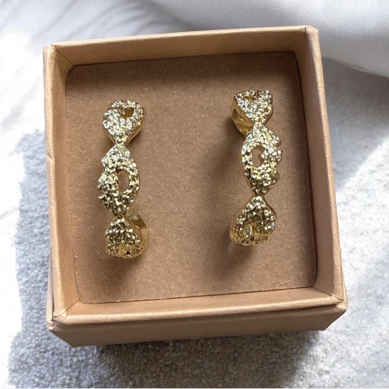 Øreringenes kerne er alle lavet af messing, som er forgyldt så det ligner guld. D.v.s. disse er forgyldt med 16 karat guld. Mix dem med andre øreringe.