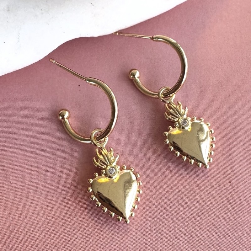 Øreringe / ørestikker - Friihof + Siig - guldbelagt "Flaming heart"