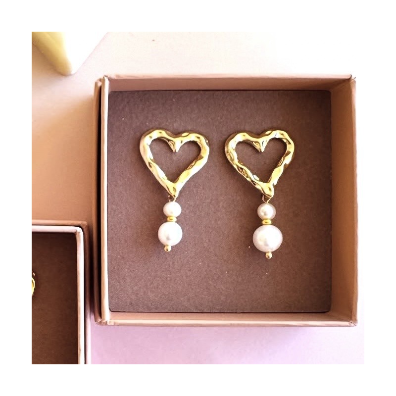Øreringe / ørestikker - Friihof + Siig - guldfinish hjerte m/ perler
