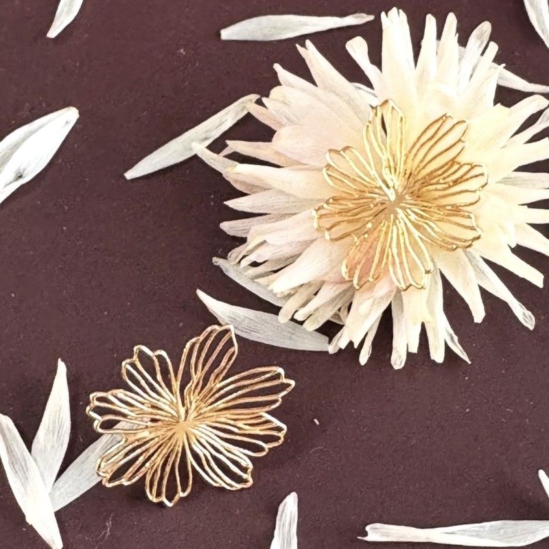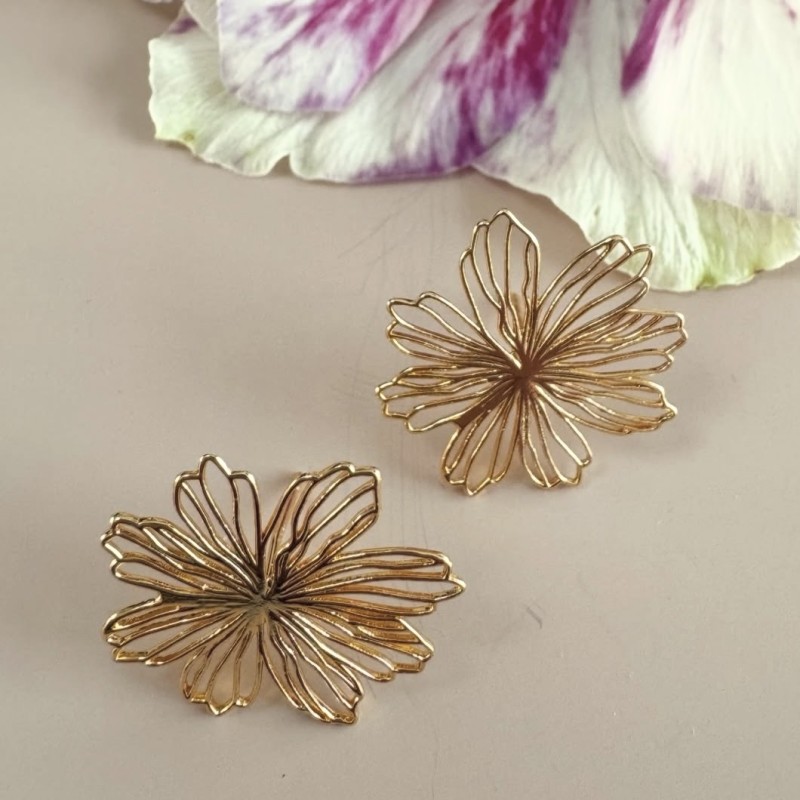 Øreringe fra Friihof + Siig - guldfinish filigran blomst