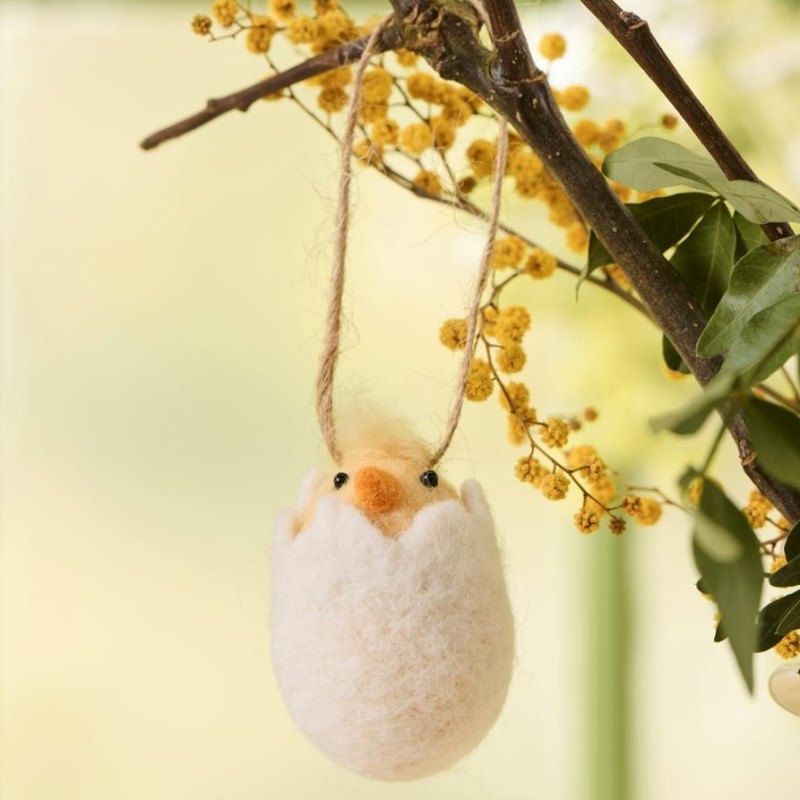 Tilføj charme til påsken med denne søde kylling i æggeskal fra Ib Laursen. Håndlavet af filtet uld og fyldt med personlighed er den et skønt ophæng, der emmer af omhu og godt håndværk. Perfekt som en del af din forårspynt eller som hyggelig detalje på dine påskegrene – ideel til at skabe traditioner år efter år.