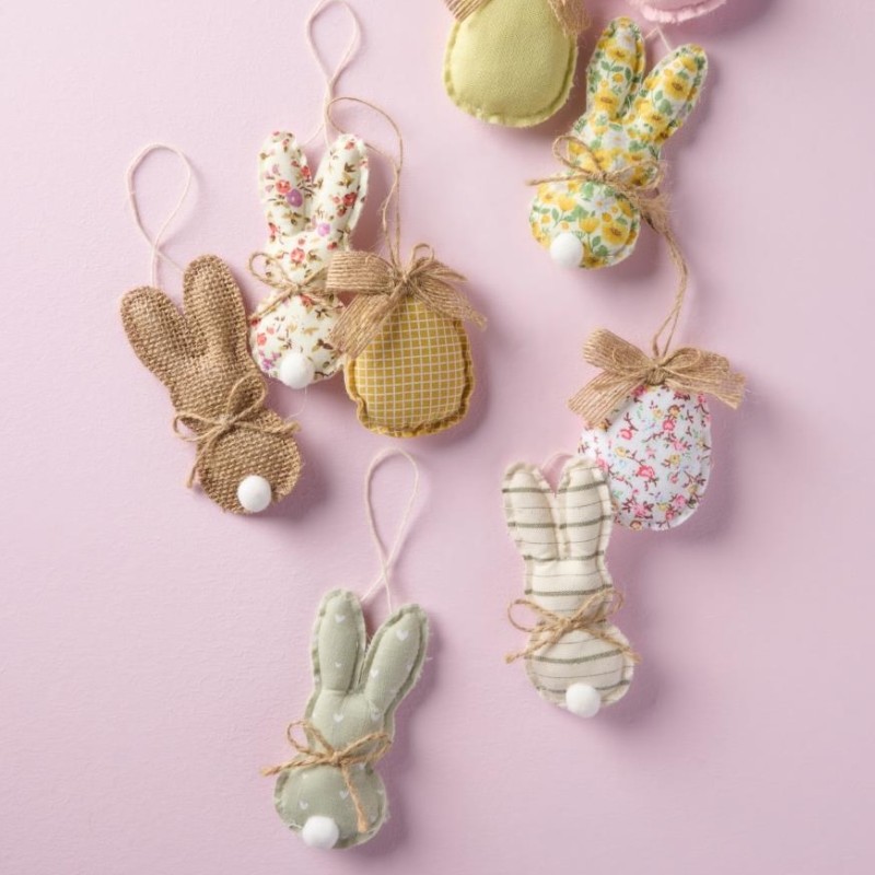 Skab hyggelig påskestemning med disse charmerende stofharer fra Ib Laursen. Vælg mellem 9 forskellige mønstre og farver, der passer perfekt til forårets dekorationer. Brug dem som ophæng på grene, i kreative arrangementer eller som en fin lille overraskelse i et påskeæg – et sødt indslag til både hjemmet og højtiden!