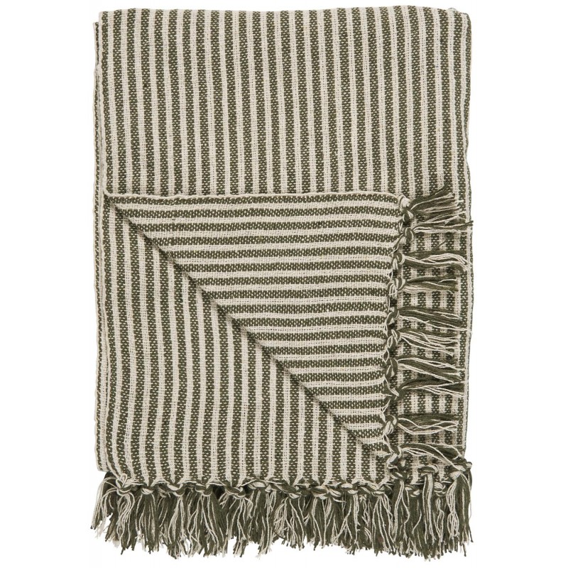 Lækker og MEGET billig plaid fra Ib Laursen. Plaiden er lavet af genanvendt bomuld i en smuk creme farve med olivengrønne striber. Brug det som slumretæppe i sofaen eller i lænestolen, på terrassen, på stranden som badehåndklæde - til de morgenfriske vinterbader, eller som en fin lille dug til picnicturen.