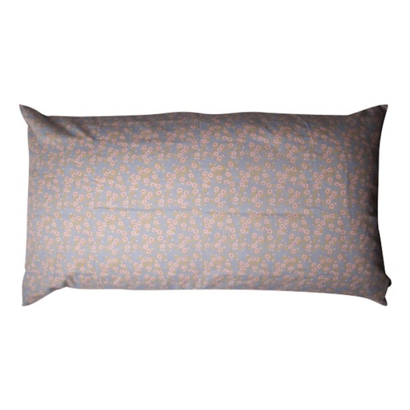 Super fint pudebetræk til gavlpude, Anna fra Au Maison, lyseblåt med lyserøde blomster samt gule blade. Pudebetrækket er perfekt til en gavlpude oven på sengetæppet, eller på en bænk - enten til at sidde på eller som ryglæn. Og så er der bare lidt sommer over det:-)