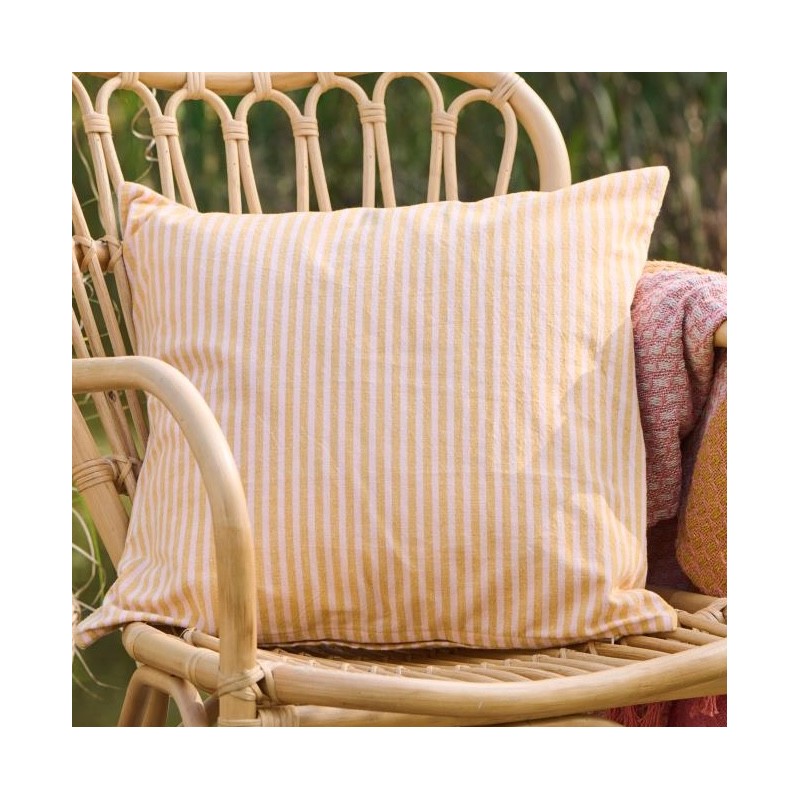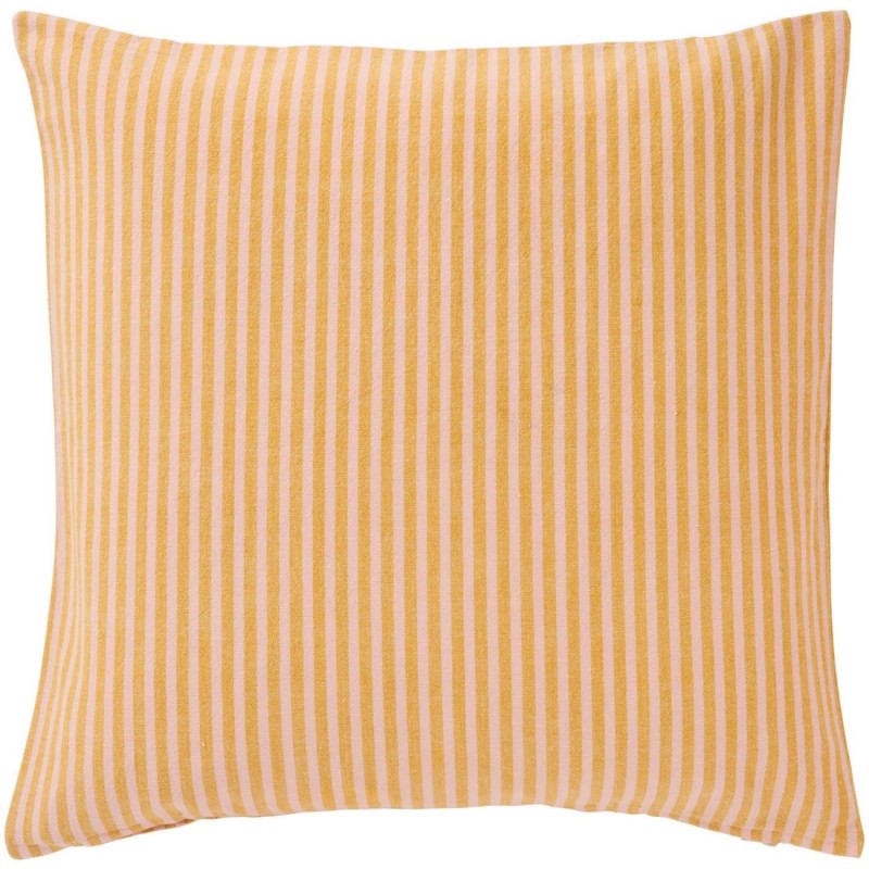 Frisk dit hjem op med det smukke "Linea" pudebetræk fra Ib Laursen. Det kvadratiske betræk er lavet af blød bomuld med fine, tætte striber i mustard og lyserøde nuancer. Det stilrene design tilføjer et sommerligt pust til sofaen, lænestolen eller terrassen – ideelt når du vil skabe en let og indbydende stemning.