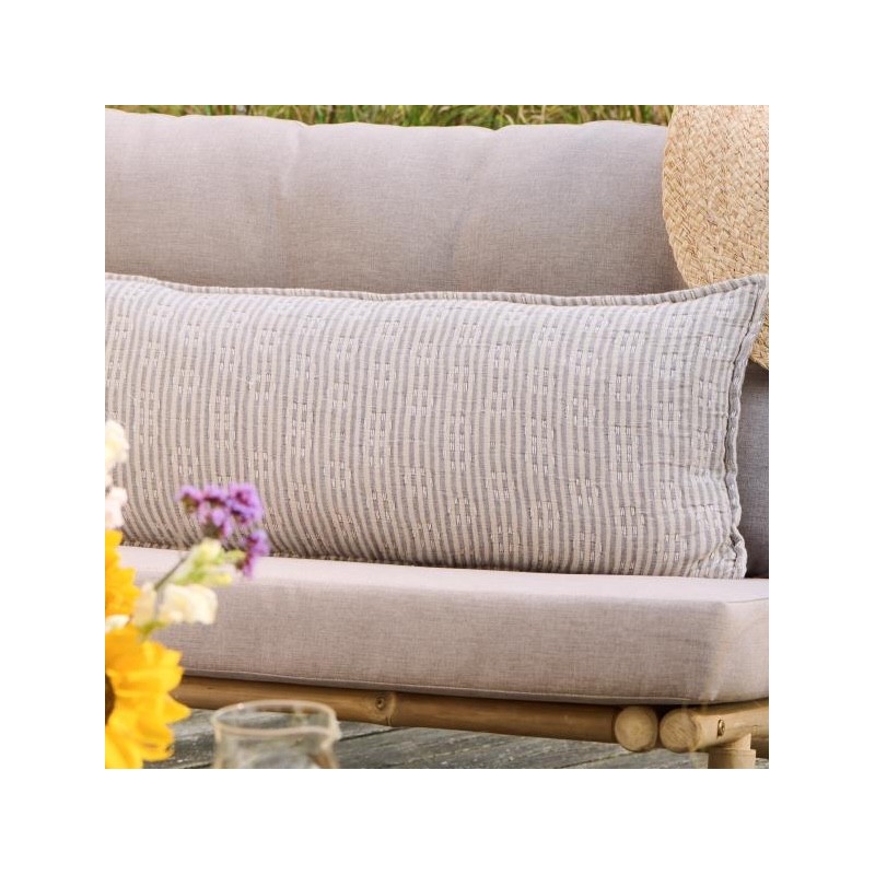 Smukt og aflangt pudebetræk fra Ib Laursen i natur- og brunstribet bomuld. Den dobbeltvævede kvalitet giver ekstra fylde, mens de dekorative Kantha-stikninger tilføjer et unikt håndlavet præg. Lynlåsåbning gør det nemt at skifte betræk. Ideel til sofaen eller sengen.