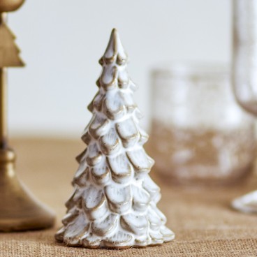 Dette fine juletræ af stentøj, navngivet "Auden", kommer fra Bloomingville og måler 14 cm i højden. Træets simple design gør det let at passe ind i enhver form for udsmykning, mens dets matte finish giver et stiligt touch på festbordet eller vindueskarmen.
