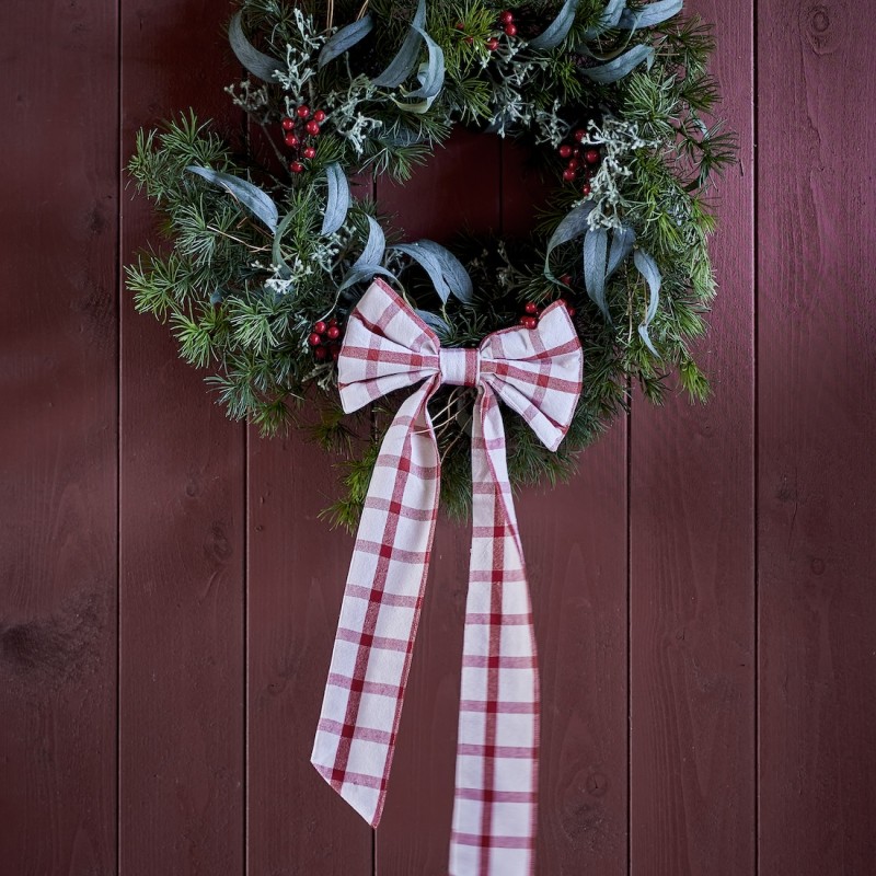 Skab julestemning med Ruby dekorationssløjfen fra Bloomingville. Lavet i rød-hvidt ternet stof og udstyret med en praktisk metalklemme, er den perfekt til kranse, gaver eller som pynt på en dug eller i vinduet. Det klassiske design tilfører charme og elegance til enhver juleudsmykning – nem at sætte op igen år efter år.