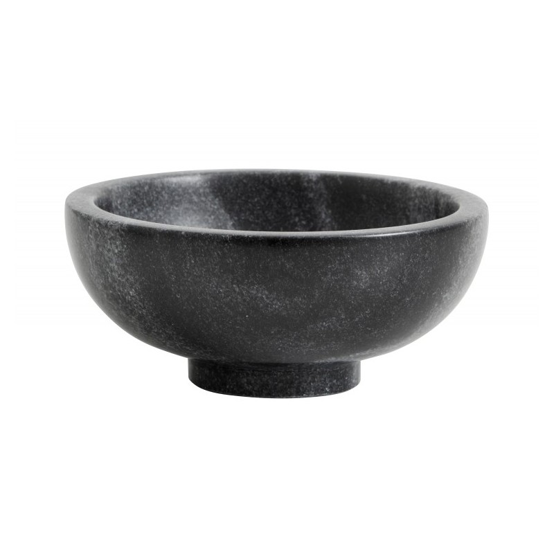Fin lille skål i sort marmor fra Nordal. Brug skålen på toilettet til smykker, håndsæbe eller i køkkenet til nødder eller bær. Kan også bruges i gangen til småting.