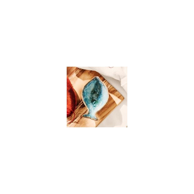 Skål "Ocean Blue" mini er fiskeformet fra Ib Laursen, skålen er en charmerende lille skål, som er perfekt til at give dit køkken personlighed og farve. Skålen er lavet i blå nuancer med reactive glaze, der først afslører sin smukke farve efter brænding og giver hver skål et unikt udseende. Ideel til små serveringer eller som dekoration.