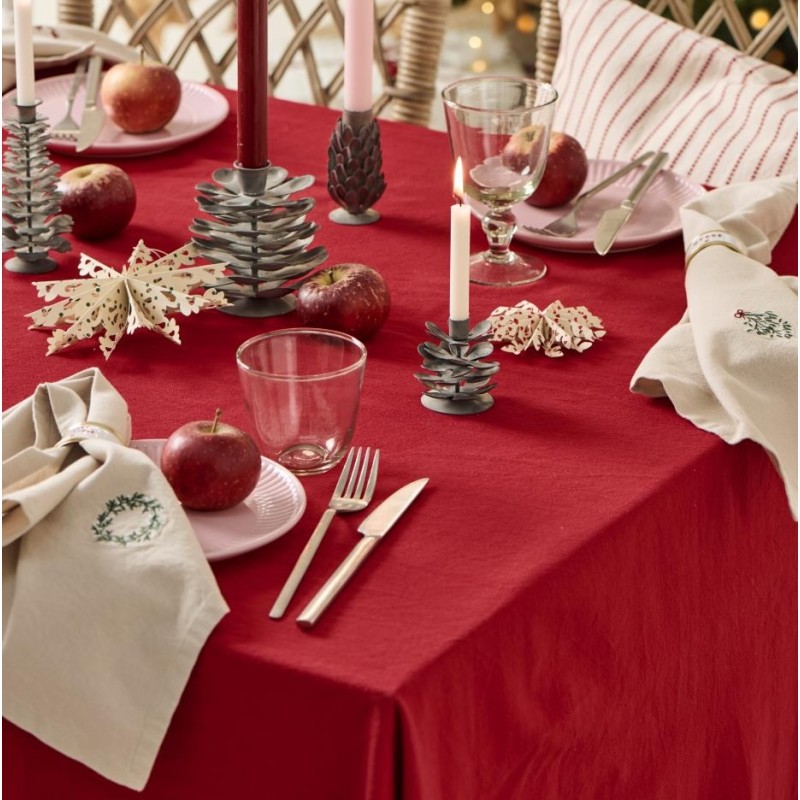 Tilføj hygge og varme til borddækningen med den smukke "Dagmar" dug fra Ib Laursen. Dugen måler 150x250 cm og kommer i en klassisk rød farve, prydet med fine hvide stikninger langs kanterne – perfekt til både julens fester og hyggelige vintermiddage. Det tidløse design gør den oplagt året rundt for et stilfuldt, nordisk udtryk ved middagsbordet.
