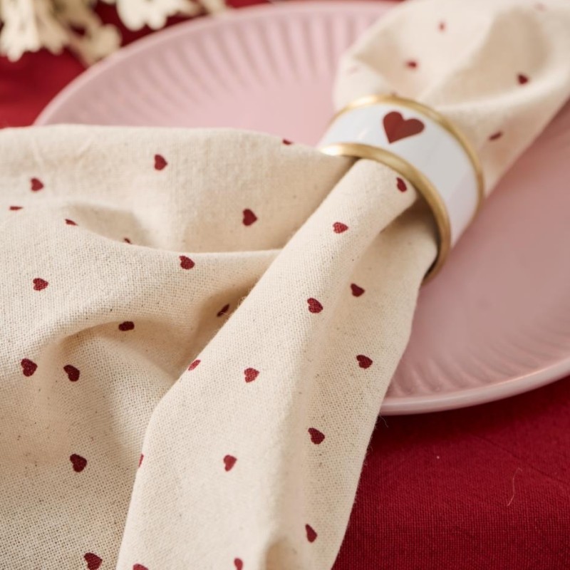 Tilføj romantisk stemning til borddækningen med stofservietten "Valentin" fra Ib Laursen. Servietten er sandfarvet og prydet med fine røde hjerter – perfekt til særlige lejligheder som Valentinsdag eller en hyggelig middag for to eller til julebordet. Lavet i blødt materiale, der kan genanvendes igen og igen. Skab varme øjeblikke ved middagsbordet.