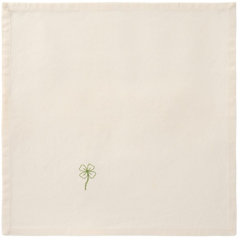 Tilføj et strejf af naturlig elegance til borddækningen med stofservietten "Flora" fra Ib Laursen. Den råhvide serviet er smukt pyntet med et broderet firkløver, som giver et fint og personligt udtryk. Perfekt til både hverdag og festlige lejligheder – kombiner den gerne med andre tekstiler for en harmonisk og indbydende atmosfære ved bordet.