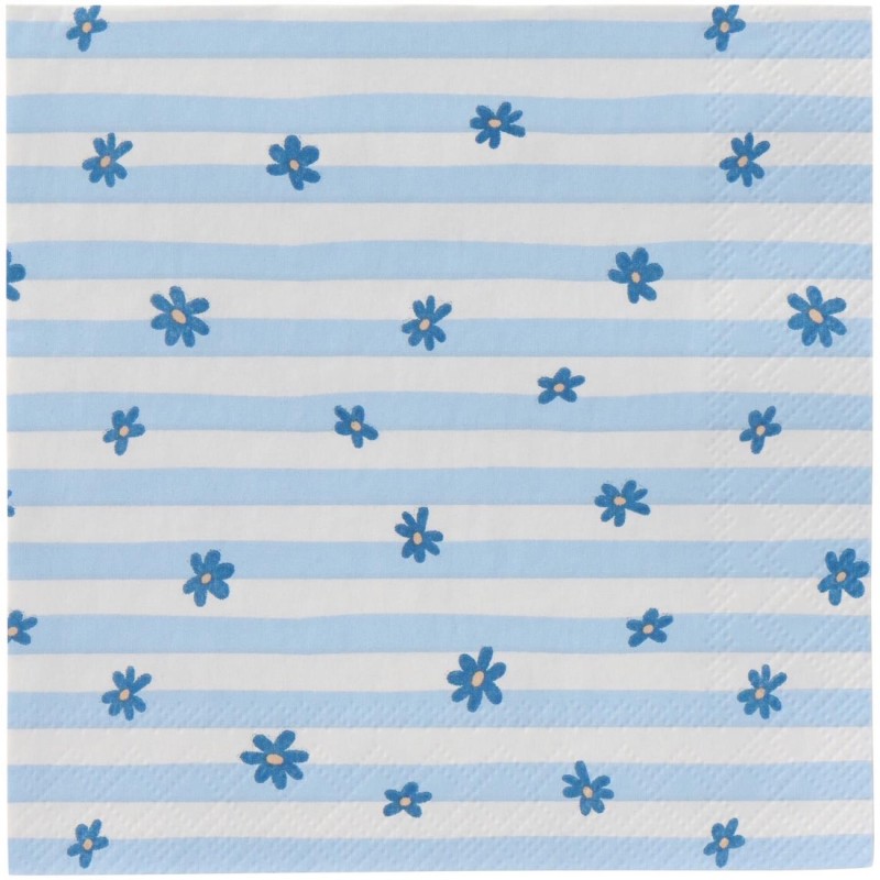Tilføj et strejf af elegance til kaffebordet med disse fine kaffeservietter fra Ib Laursen. Servietterne er pyntet med smukke blå blomster og lyseblå striber, der skaber en charmerende og sommerlig stemning. Perfekte til både hverdag og festlige lejligheder. Servietterne er ideelle til hyggelige sammenkomster eller som dekorativt indslag ved servering.