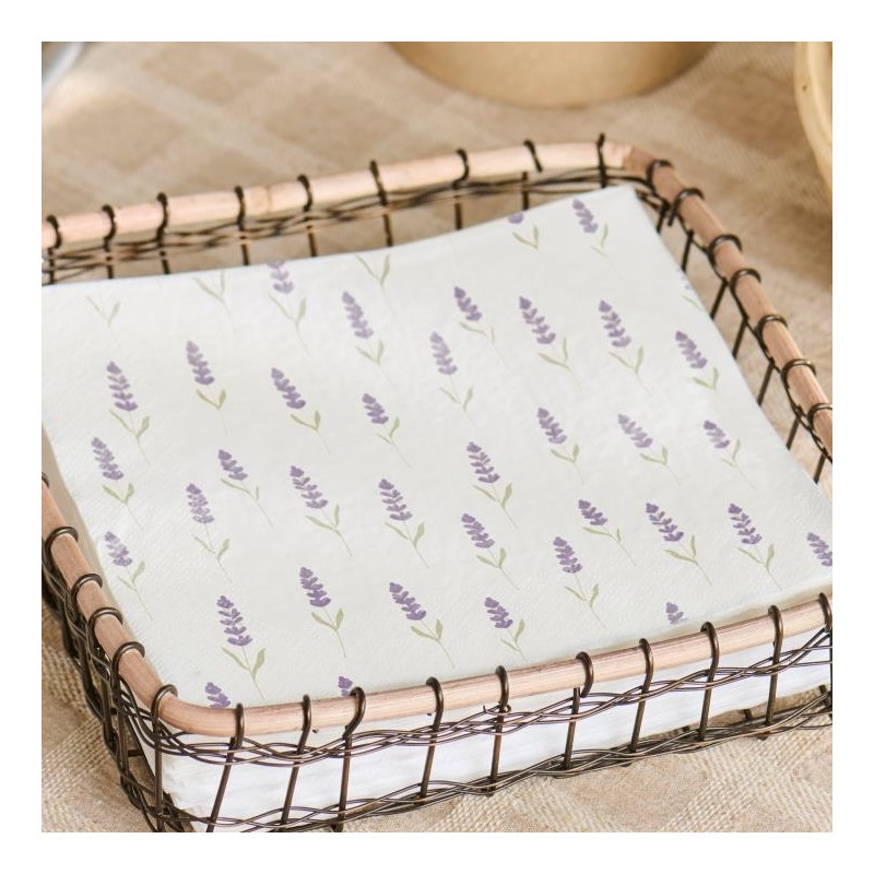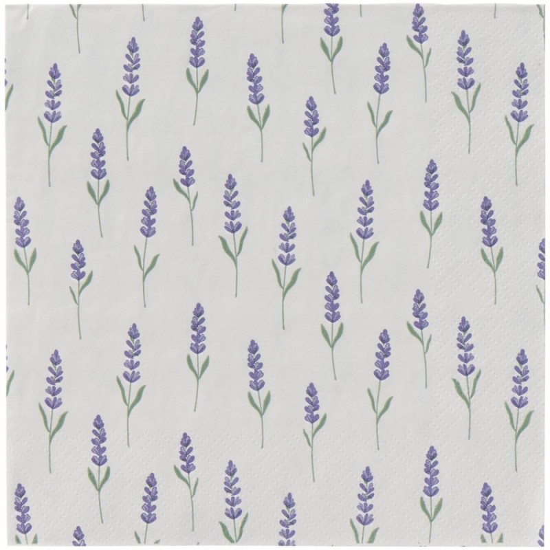 Tilføj et strejf af sommer og romantik til dit bord med disse fine servietter med lavendelmotiv fra Ib Laursen. Pakken indeholder 20 kvadratiske papirservietter, der kombinerer funktionalitet med charmerende design. Perfekte til både hverdag og festlige lejligheder – skab en hyggelig stemning i din borddækning!