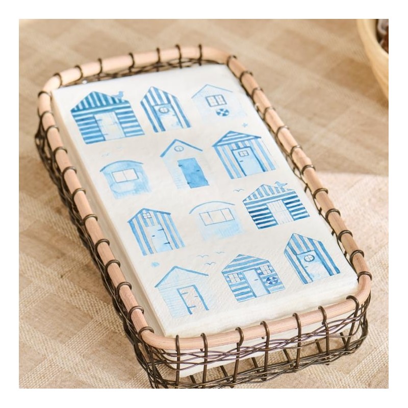 Skab en sommerlig stemning ved borddækningen med disse charmerende servietter fra Ib Laursen. Pakken indeholder 16 aflange servietter dekoreret med fine blå strandhuse, der bringer tankerne hen på hyggelige dage ved kysten. Perfekte til både havefester og afslappede middage.