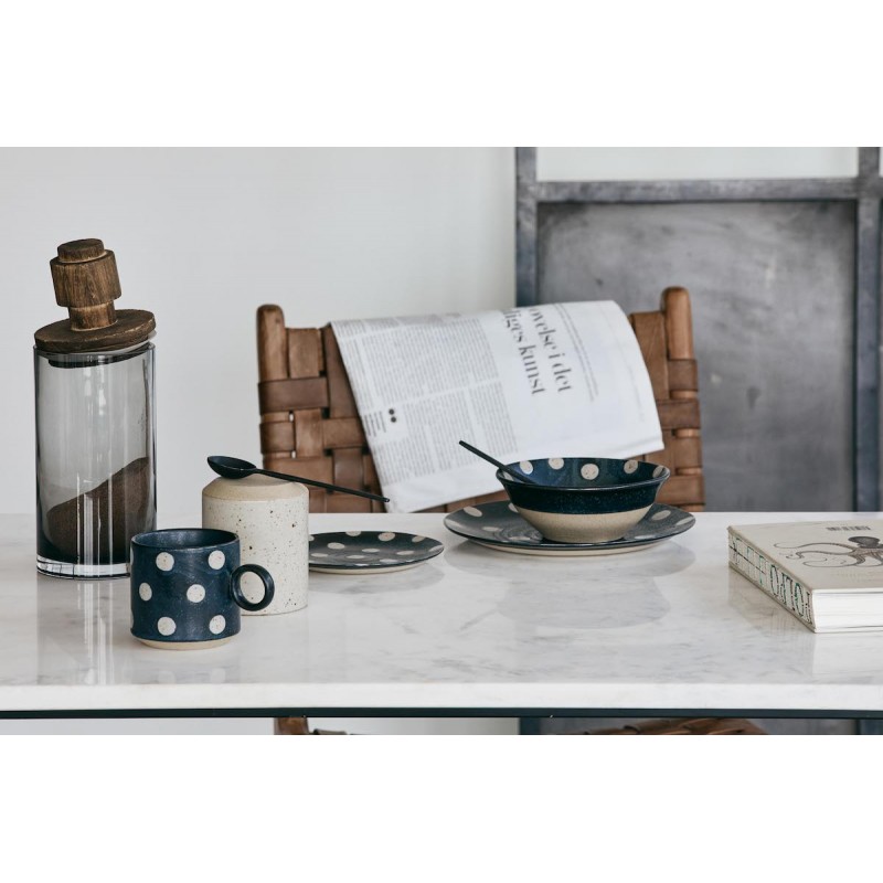 Kagetallerken "Grainy" mørkeblå med sandfarvede prikker fra Nordal. Tallerkenen er lavet af keramik og porcelæn. Farven kan godt varierer fra vare til vare. Tallerkenen tåler opvaskemaskine.
