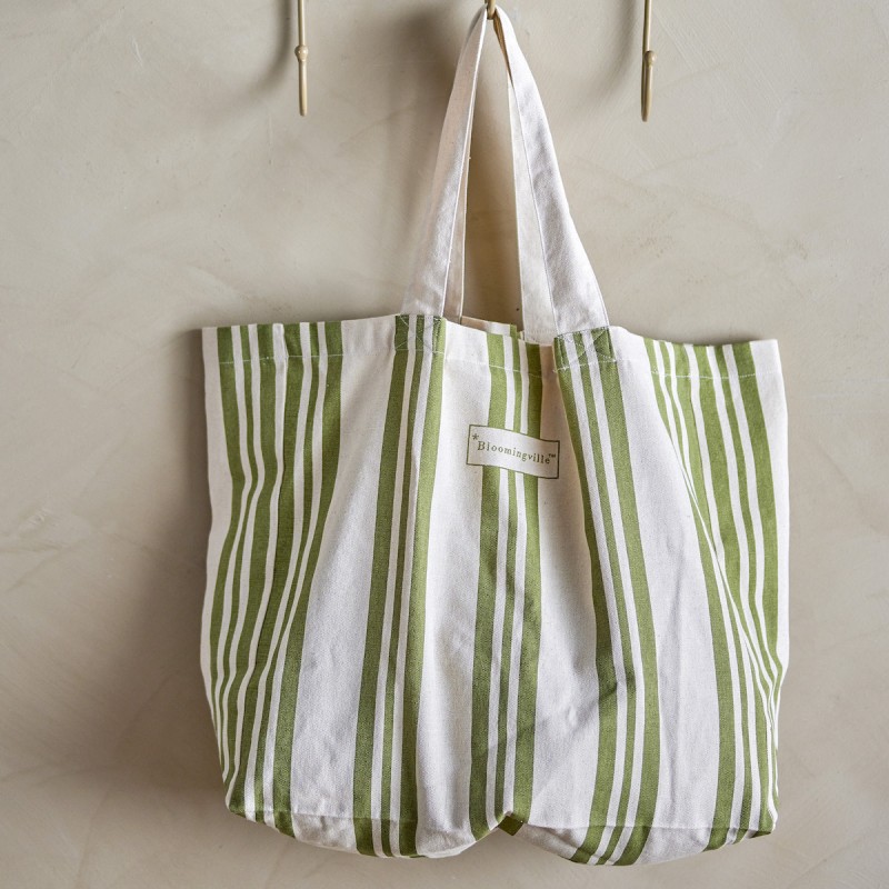 Pas på naturen, mens du shopper løs med vores nye indkøbstaske fra Bloomingville. Denne taske er kendetegnet ved dens friske grønne striber og rummelige design - et ideelt alternativ til plastikposer når turen går forbi supermarkedet eller torvet. Med "Trina" kan du transportere dine varer med stil!
