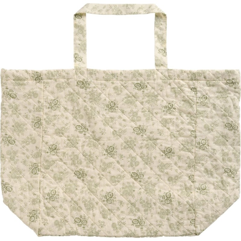 Denne quiltede taske fra Ib Laursen kombinerer funktionalitet med et smukt design. Den cremefarvede bund prydes af fine grønne blomster, som tilføjer et frisk og naturligt udtryk. Taskens rummelige størrelse gør den ideel som strandtaske eller shopper – perfekt til både hverdag og weekendture med stilfuldt twist.