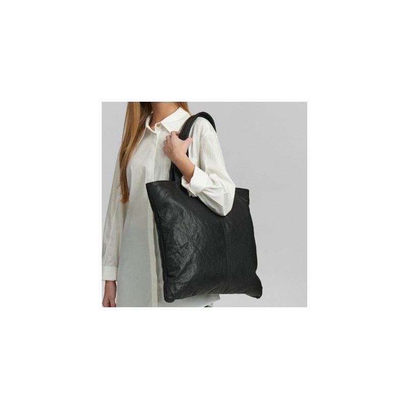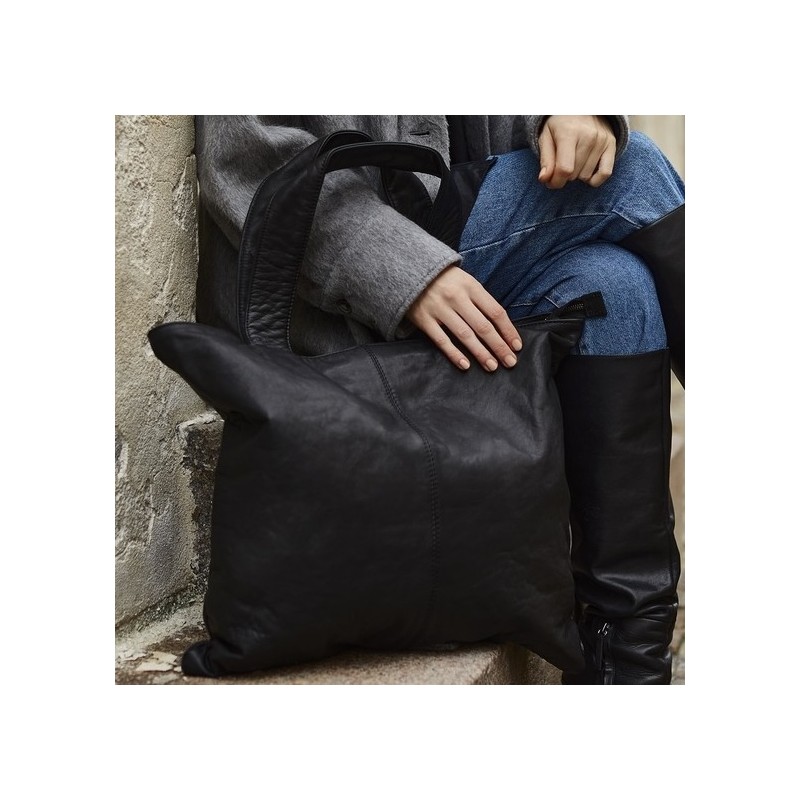 Oplev kombinationen af stil og funktionalitet med denne sorte shopper fra Depeche, fremstillet i blødt lammeskind med smuk vintagefinish. Tasken har lynlåslukning, rummeligt hovedrum med plads til en 13" laptop og A4-mapper samt ekstra clutch, lynlåslomme og mobillommer. En tidløs taske der passer perfekt til både hverdag og arbejde.
