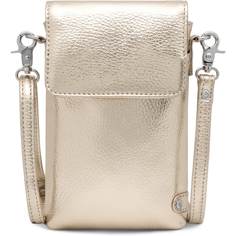 Elegant og funktionel mobiltaske fra Depeche i smukt champagnefarvet koskind. Tasken har et enkelt og tidløst design med en praktisk størrelse, der passer perfekt til enhver outfit. Den har ét hovedrum til mobilen samt en lille åben lomme foran. Tasken lukkes nemt med magnetknap.
