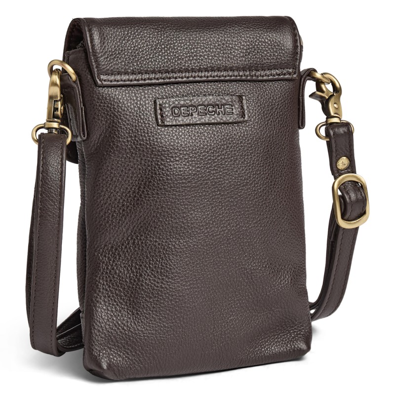 Smuk og praktisk mobiltaske fra Depeche i chokoladebrunt koskind. Tasken har et tidløst design, der passer til enhver stil, og den kompakte størrelse gør den perfekt på farten. Den lukkes med magnetknap og rummer én hovedlomme samt en frontlomme – ideel til mobilen og småting. Et moderne accessory i lækker kvalitet med funktionalitet og stil