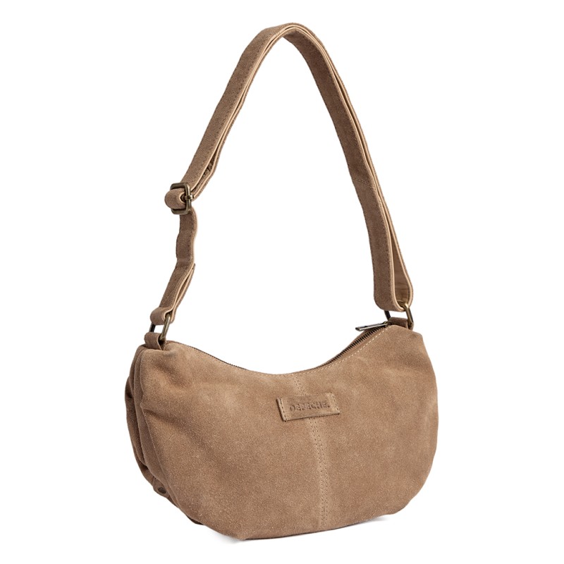 Skuldertasken "Bilbao" fra Depeche i sandfarvet ruskind kombinerer eksklusivitet med et moderne, afslappet udtryk. Den elegante taske lukkes sikkert med lynlås og har både en indvendig lynlåslomme samt to åbne lommer til nem organisering af hverdagens småting. Med den justérbare rem kan tasken bæres som skulder- eller crossbodytaske.