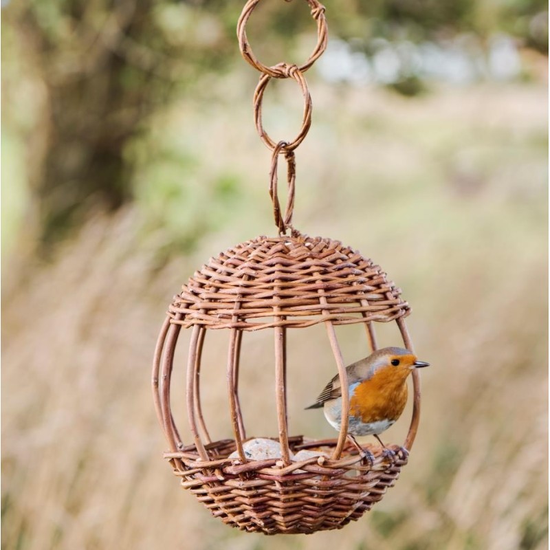Skab liv i haven med dette håndlavede fuglefoderophæng fra Ib Laursen. Kuglen er flettet i naturlig pil og har en smuk, dekorativ kæde til ophæng. Den runde form beskytter foderet mod vind og vejr, samtidig med at den giver småfugle et trygt sted at spise og hvile. Et charmerende og funktionelt indslag til enhver have eller altan året rundt.