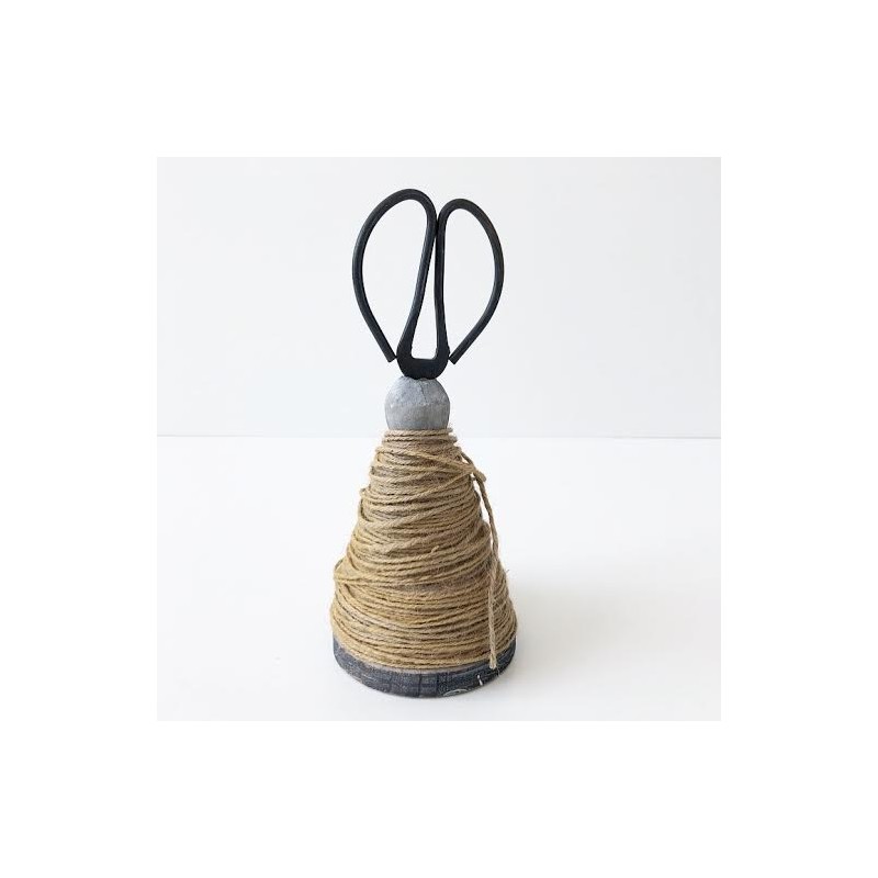 Mål: Spole: 18 cm - Saks: 19 cm i alt 32 cm - Materiale: Træ, jute, jern