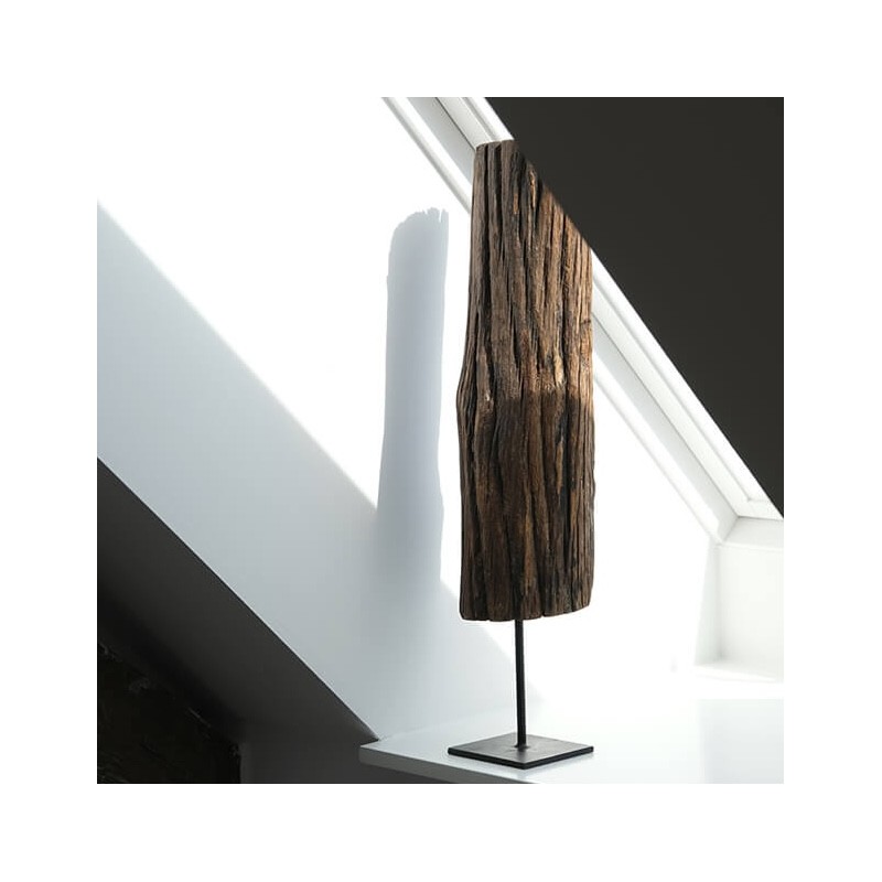 Skulptur UNIKA fra Trademark Living er lavet af genbrugstræ på en rå metalfod. Hver skulptur har sit eget udtryk med naturlige sprækker, struktur og patina, der vidner om træets historie. Et unikt dekorativt element, som tilfører varme, personlighed og karakter til enhver indretning.