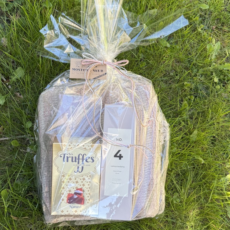 | Gave: Lyseblå plaid m/ Chokoladetrøfler, servietter & duftpinde | +249,00 kr |