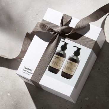 Gaveæske "Northern dawn" fra Meraki. Forkæl dig selv eller en du holder af med den perfekte gaveæske fra Meraki. Gaveæsken indeholder en håndsæbe samt en håndlotion, der begge har dufttoner af orange, patchouli og cedertræ. Sammen er produkterne det perfekte kit ved håndvasken.