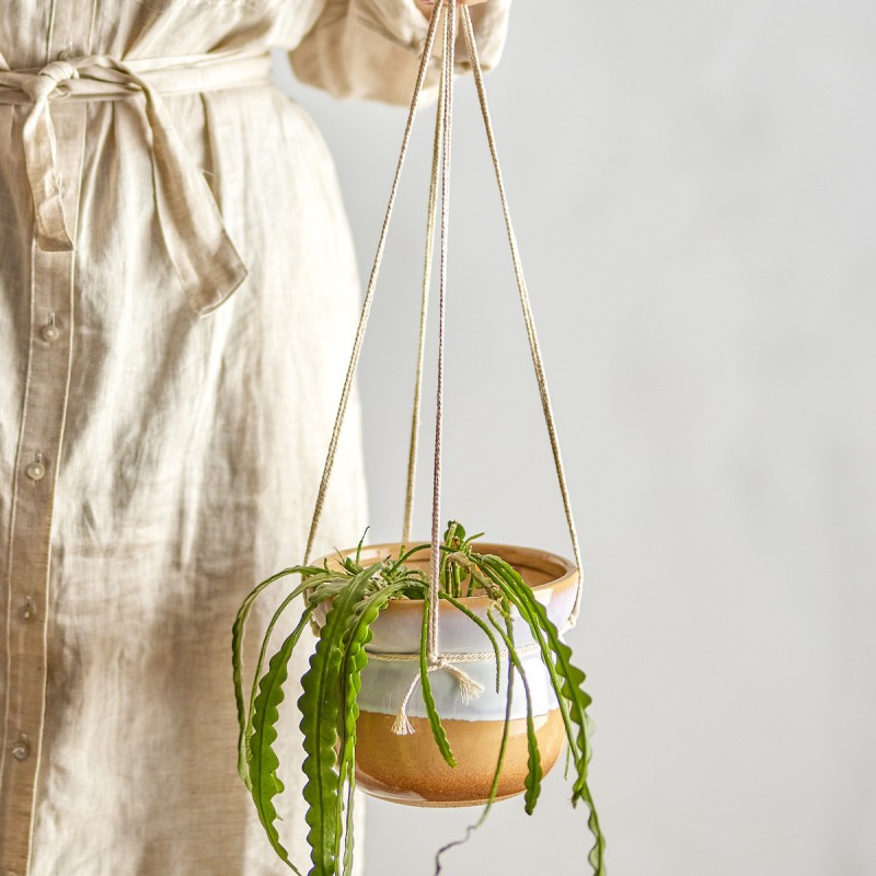 Hængeskjuleren "Linor" fra Bloomingville forvandler plantedyrkning til kunst. Den brune og smukke lyseblå farvet skjuler tager plantepleje op på et nyt niveau ved at kombinere design med funktionalitet. Skjuleren kan hænges op via de fine snore der er monteret derpå, så du kan få fine grønne planter eller urter ned fra loftet.