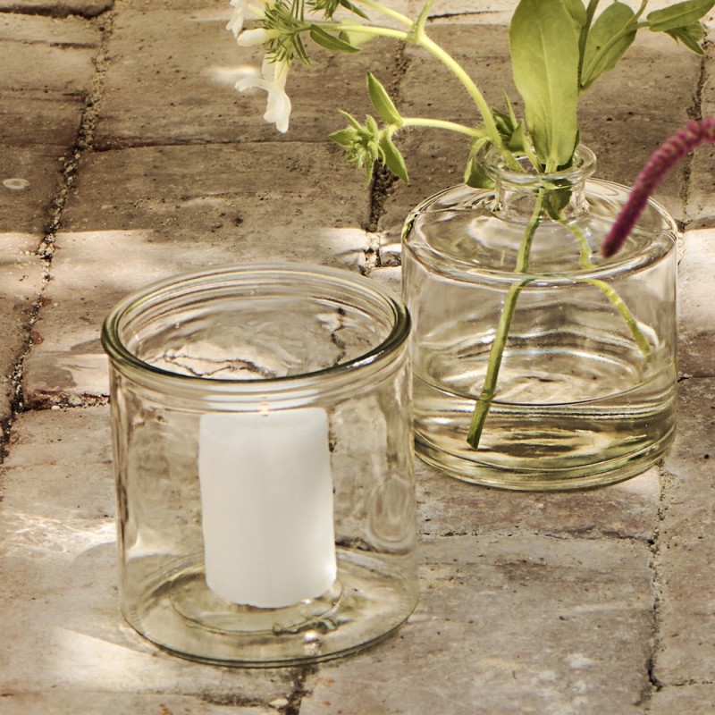 Skjuler/fyrfadsstage "Hannah" fra Ib Laursen er en enkel og hyggelig glaspotte i klart glas. Den cylinderformede krukke passer perfekt til små planter, stiklinger eller som fyrfadsstage. Med sit minimalistiske udtryk blender den smukt ind i enhver indretning og fremhæver det grønne uden at tage fokus – både praktisk og dekorativ elegance.