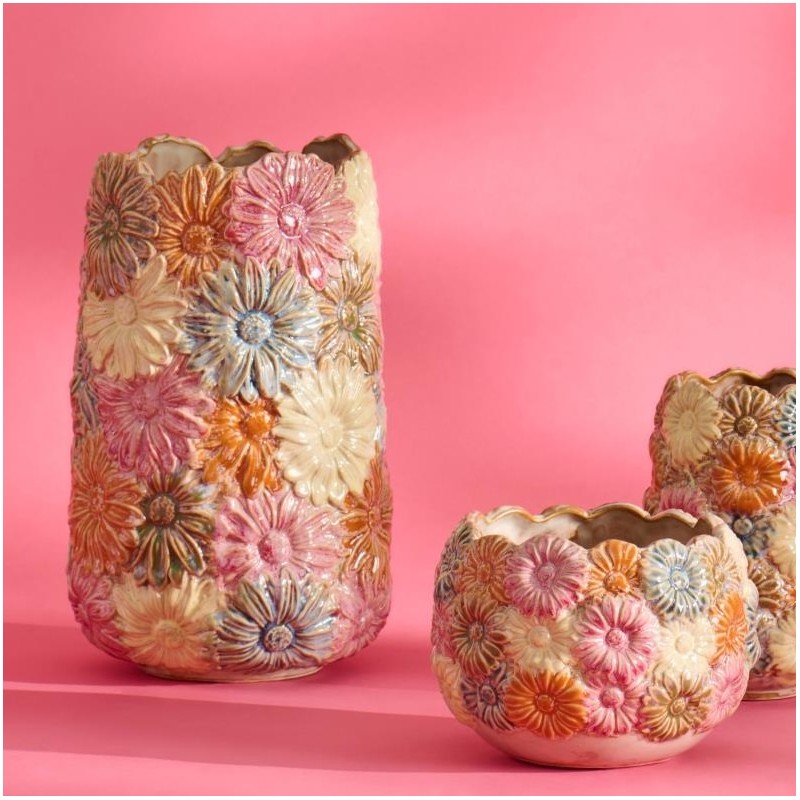 Giv dit hjem et frisk pust med denne charmerende vase med blomster "Daisy" fra Ib Laursen. Vasen er dekoreret i smukke, multifarvede nuancer og skaber liv og glæde i enhver indretning. Perfekt som både pyntegenstand og til buketter eller enkelte stilke – den tilfører hygge, farve og personlighed til dit rum på elegant vis, se også den fine skjuler
