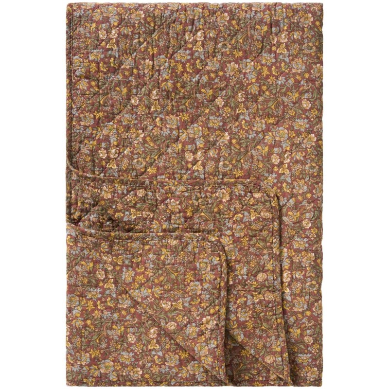 Quiltet vattæppe fra Ib Laursen i støvet bordeaux med smukke blomsterdetaljer i blå, gul og grøn. Tæppet er lavet i blød bomuldskvalitet og har en behagelig, let vattering, der gør det ideelt som ekstra varme på sofaen eller til hyggelige stunder. Et dekorativt og stemningsfuldt valg til hjemmet.