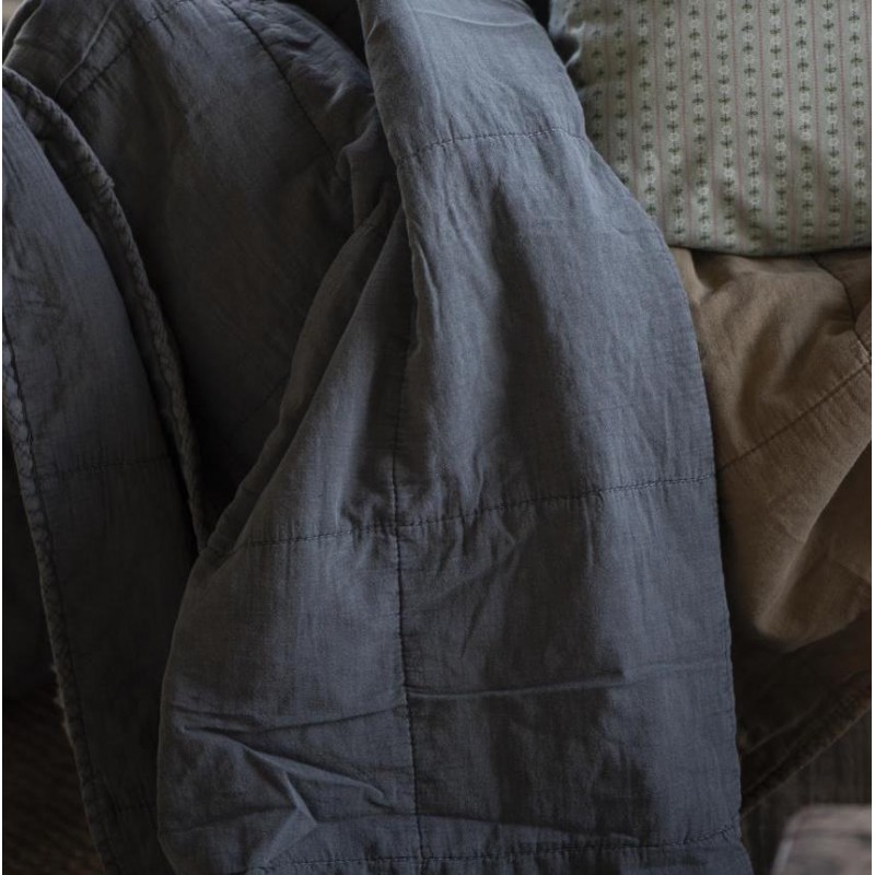 Lækker quilt/vattæppe fra Ib Laursen. Vattæppet har en smuk mørkegrå farve i en dejlig blød kvalitet. Perfekt slumretæppe i sofaen eller på terrassen en kølig sommeraften. Det kan også bruges som sengetæppe til en enkeltmandsseng. Og så er det en rigtig god sommerdyne:-) Vattæppet er utroligt populært og fås i mange flotte farver HER