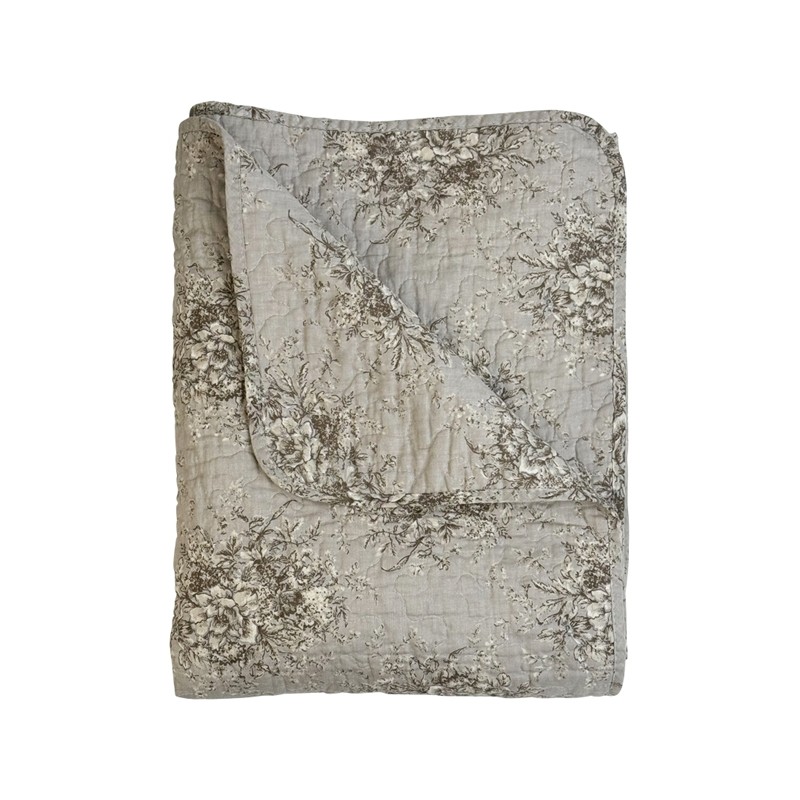 Skab hygge og stil i dit hjem med dette smukke quilt/vattæppe "Noelle-Grå" fra Au Maison. Vattæppet er designet i en elegant grå nuance prydet med store grå blomster, der tilfører et sofistikeret udtryk til enhver indretning. Perfekt som sengetæppe eller sofaoverkast – både dekorativt og funktionelt.