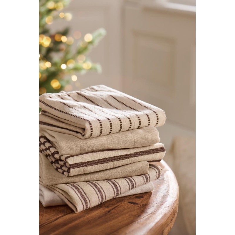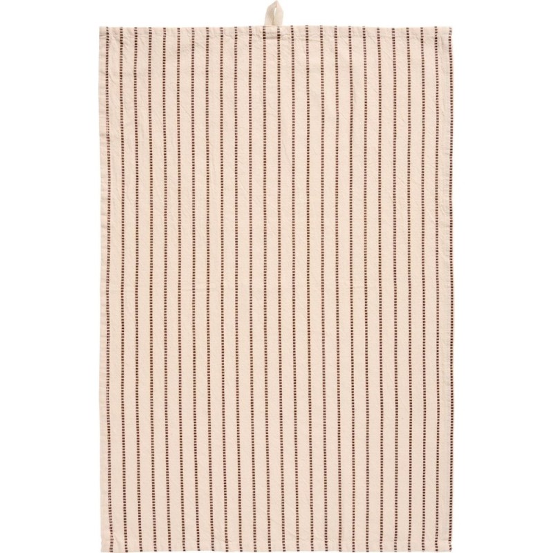 Det naturfarvede viskestykke "Dixie" fra Ib Laursen måler 50x70 cm og er designet med fine, brune indvævede striber, der tilføjer et rustikt og tidløst præg til dit køkken. Det er fremstillet i en slidstærk kvalitet, som gør det både funktionelt og dekorativt – perfekt til daglig brug eller som del af en hyggelig borddækning.