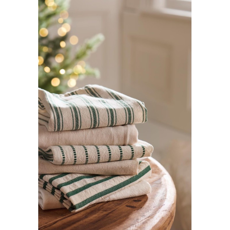 Viskestykket "Eske" fra Ib Laursen kombinerer funktionalitet og æstetik med sine fine mørkegrønne striber på tværs. Fremstillet i 100% bomuld, har det en høj sugeevne og slidstærk kvalitet – perfekt til daglig brug i køkkenet. Det tidløse design gør det også oplagt som en lille, personlig værtindegave.