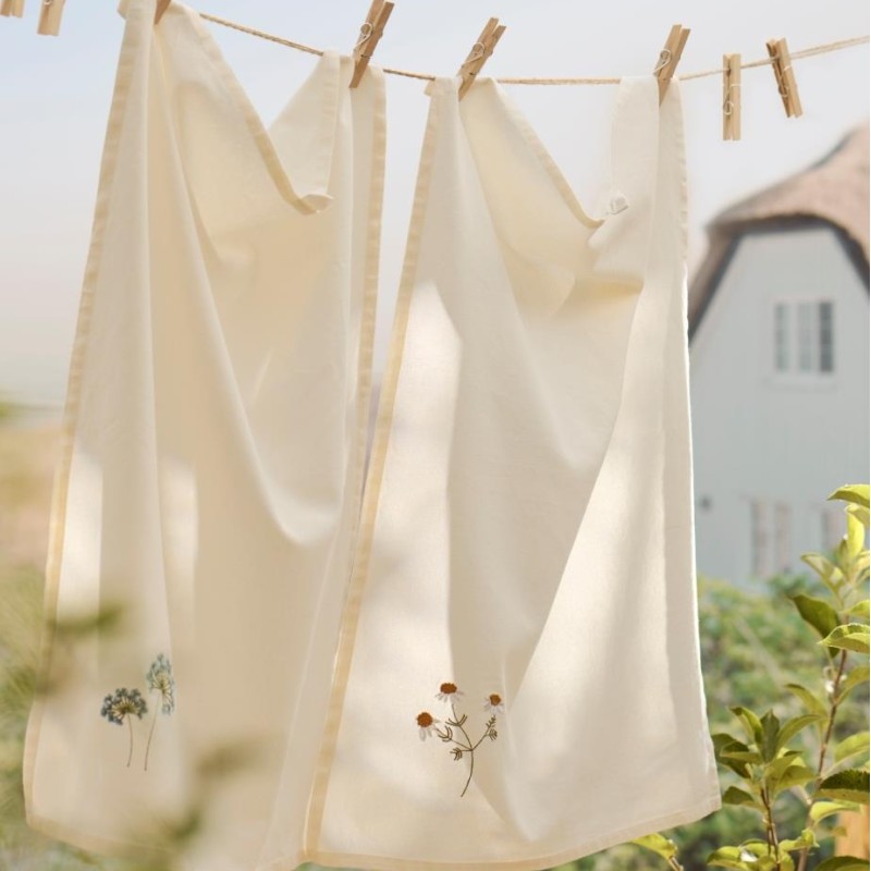 Tilføj charme og hygge til dit køkken med dette smukke viskestykke i råhvid fra Ib Laursen. "Flora"-designet prydes af en delikat blå, broderet skærmblomst, som giver et romantisk og nostalgisk udtryk. Fremstillet i blødt bomuld, er det både funktionelt og dekorativt for enhver boligindretning med sans for detaljer.