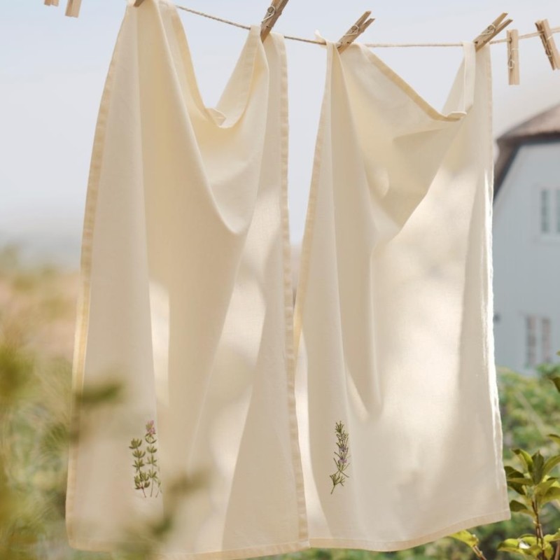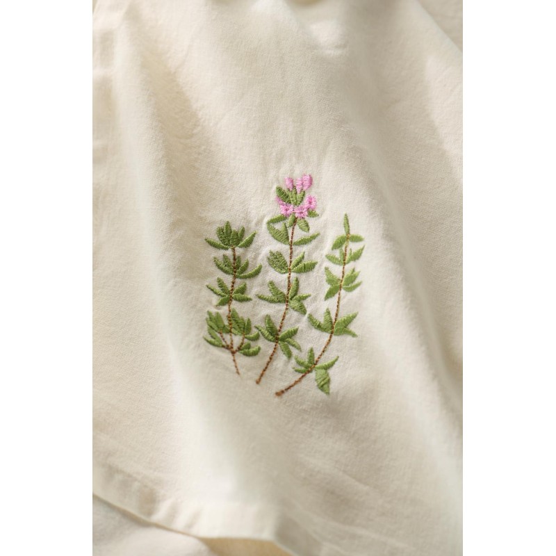 Bring sommerstemningen ind i køkkenet med dette smukke viskestykke fra Ib Laursen. Viskestykket måler 50x70 cm og er råhvidt med fine, broderede timianblomster samt teksten "Summer Vibes", der giver et let og hyggeligt udtryk. Perfekt til både praktisk brug og som dekorativ detalje i dit hjem.